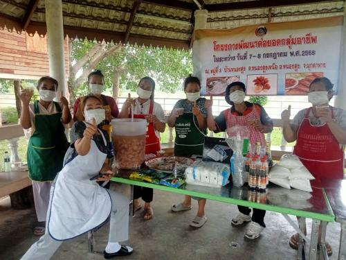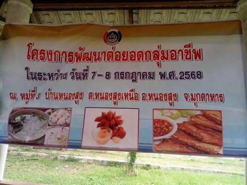 ? นายสุดสาคร แสนสุข พัฒนาการอำเภอหนองสูง มอบหมายให้ เจ้าหน้าที่พัฒนาชุมชนอำเภอหนองสูง จัดอบรมโครงการพัฒนาต่อยอดกลุ่มอาชีพ (ทำลูกตาลลอยแก้ว สละลอยแก้ว หมูสามชั้นแดดเดียว) ณ หมู่ที่ 3 ตำบลหนองสูงเหนือ อำเภอหนองสูง จังหวัดมุกดาหาร